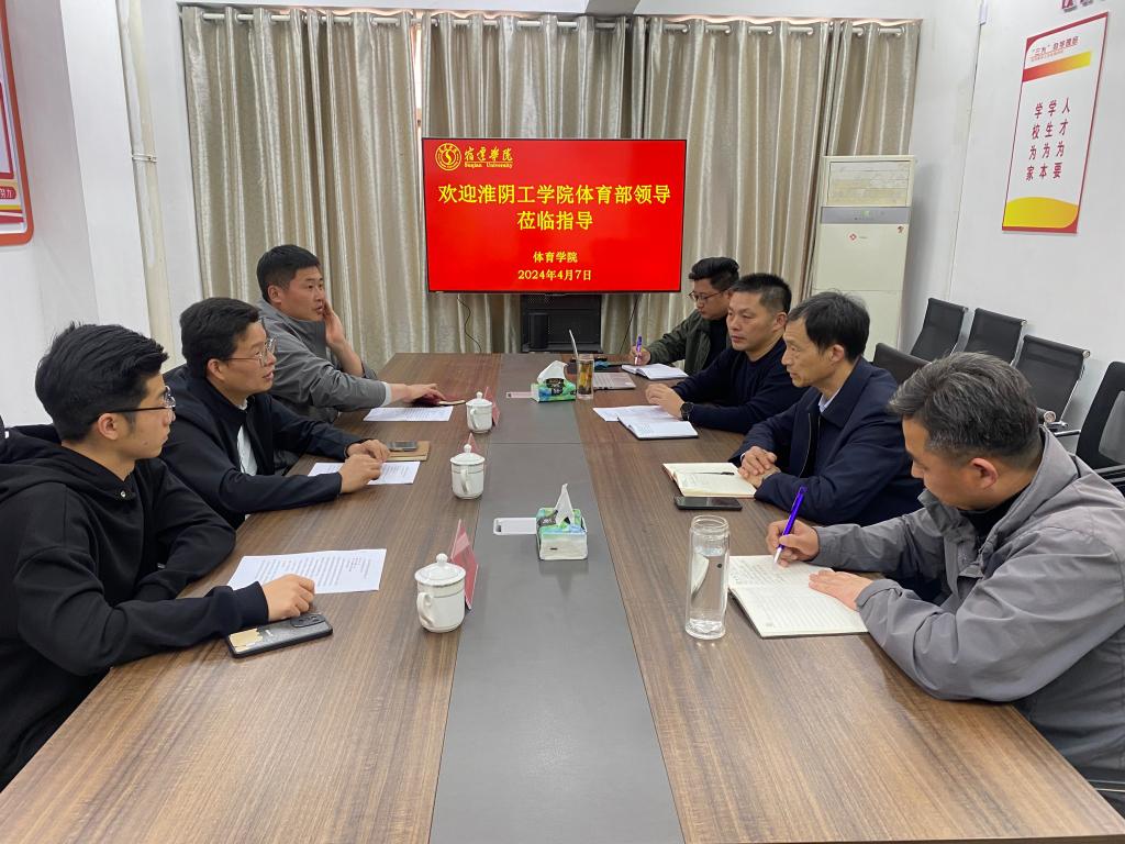 4月7日下午15:00淮阴工学院体育部主任王冬一行莅临我院交流指导。体育学院党总支副书记(主持工作)张华文、办公室主任周剑、综合教研室主任胡小妹、体育场馆中心主任毛学娇、负责体质测试工作朱香敏老师、董南燕老师参加了此次会议。会议由教学副院长刘青主持。