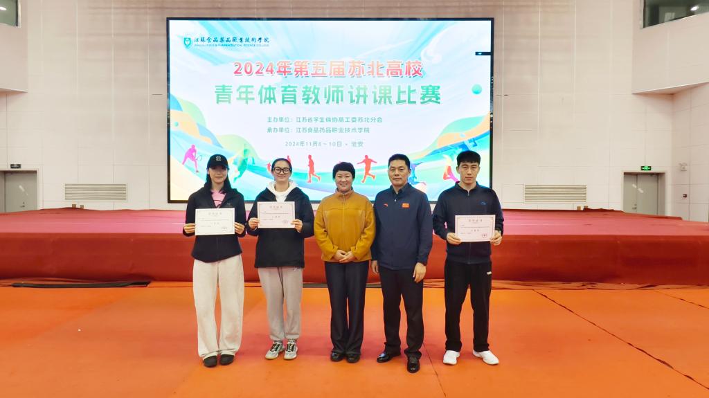 2024 年11月8-10日,由江苏省学生体协高工委苏北分会主办的第五届苏北高校青年体育教师讲课比赛在江苏食品药品职业技术学院圆满落幕,我院张琦雪和蒙晓涵老师获得一等奖,王子涵老师获得二等奖。