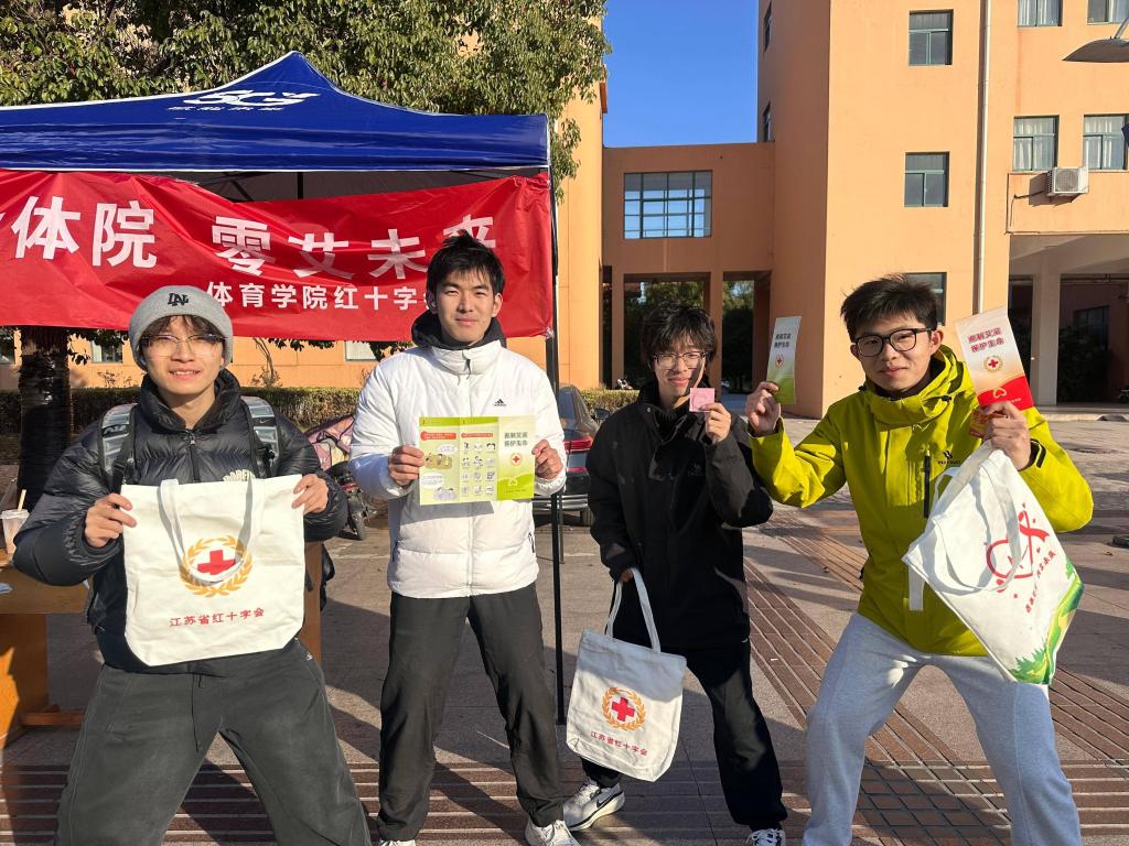 十二月三日下午,体育学院红十字分会应宿迁学院红十字会要求,开展“活力体院,零艾未来”活动。我们开展,答题寻宝,有爱合影等一系列关爱活动,为大家提供防艾小知识,让大家远离艾滋,面对艾滋,不惊慌,不恐惧。活动氛围热烈,体育学院志愿者身着红十字会红马甲全程服务,既让师生在轻松氛围中学习知识,也让“活力体院,零艾未来”的主题落到实处。